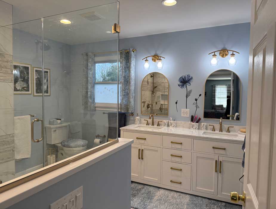 Our client wished for a spacious and open bathroom; and while she was healthy and energetic presently, she wisely considered future possibilities and requested that the new bathroom be beautiful, modern, and also capable of accommodating a walker and other accessibility features, if so needed, some time in the future.