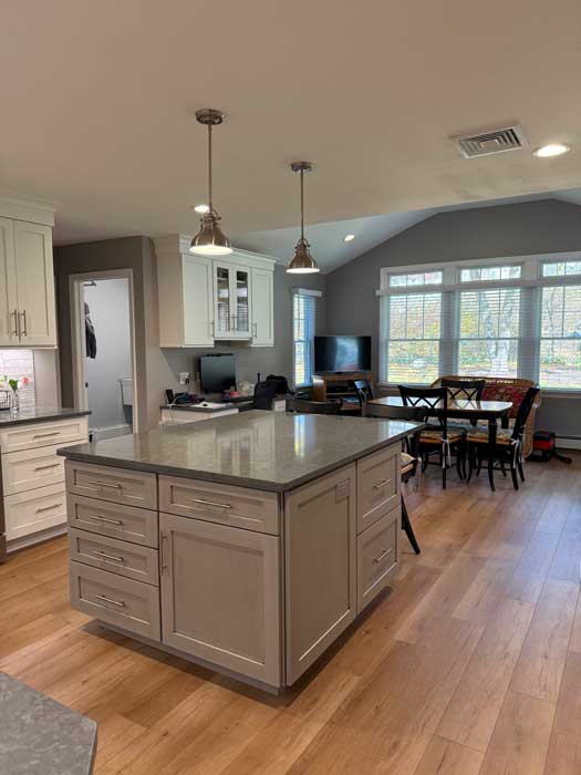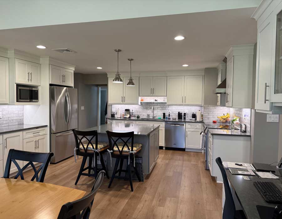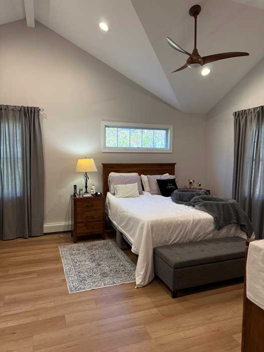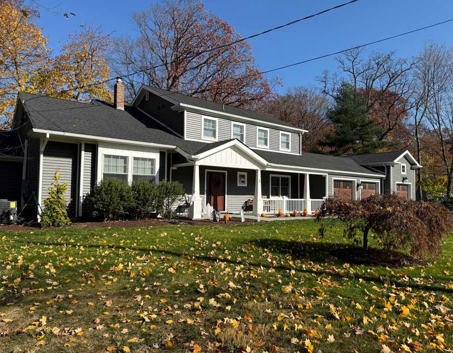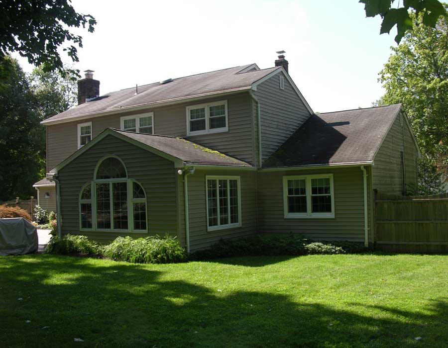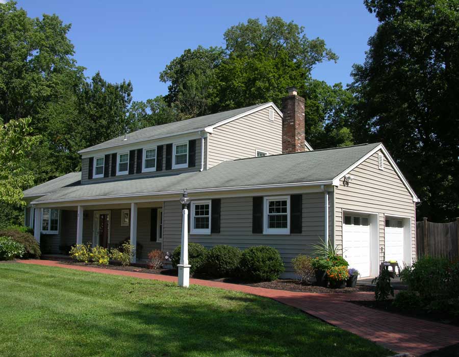 After living in this house for a long time, they were finally ready to make it their forever home. A first floor master suite was added, the kitchen was totally redone and the garage was expanded to add a bay for a third car. Exterior upgrades included new windows and siding as well as reconfiguration of the front porch.