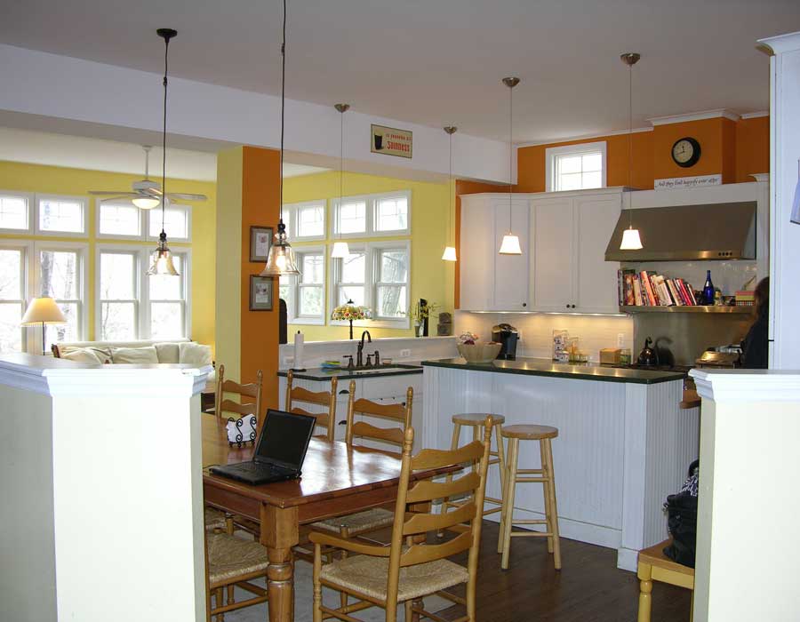 Built in the footprint of the existing, the new house needed to maintain the “cottage-like” feel of the original so that it wasn’t just a “big 2-story house” from the front. Flexible spaces were designed to accommodate Mom moving in while taking into account how they would be used after she’s no longer living there.