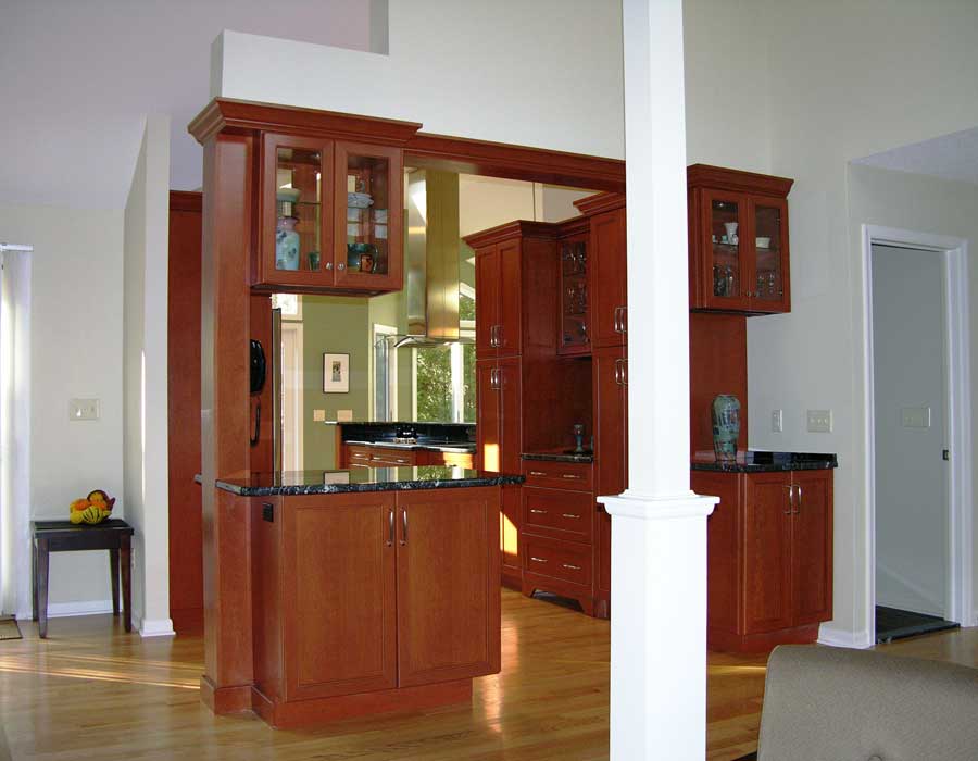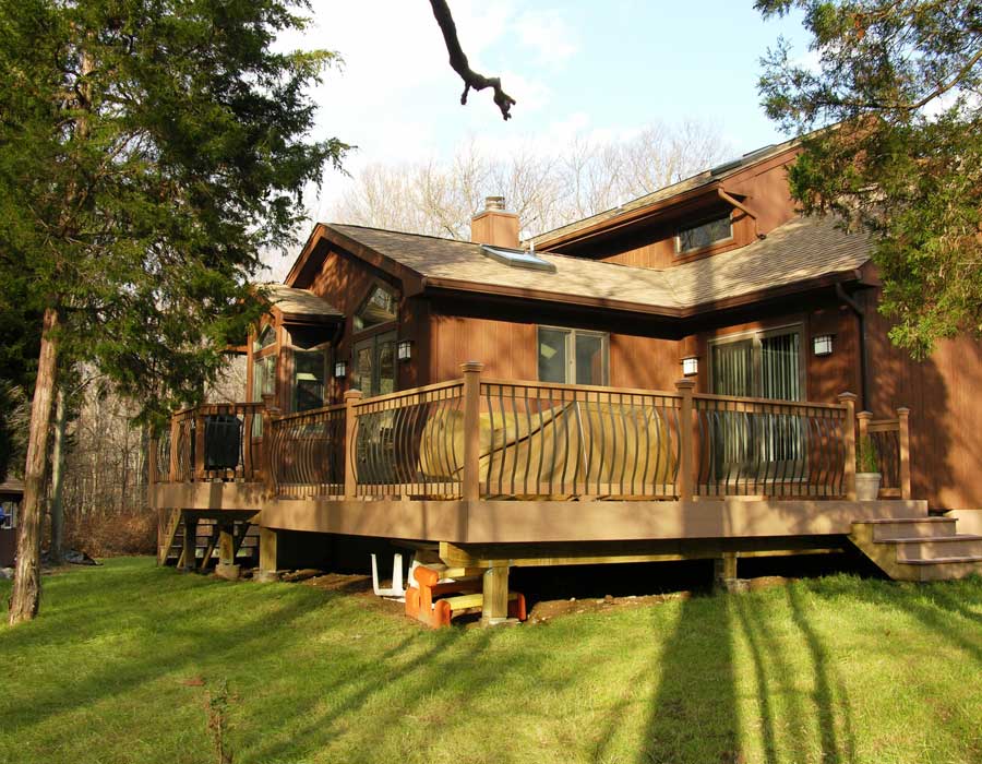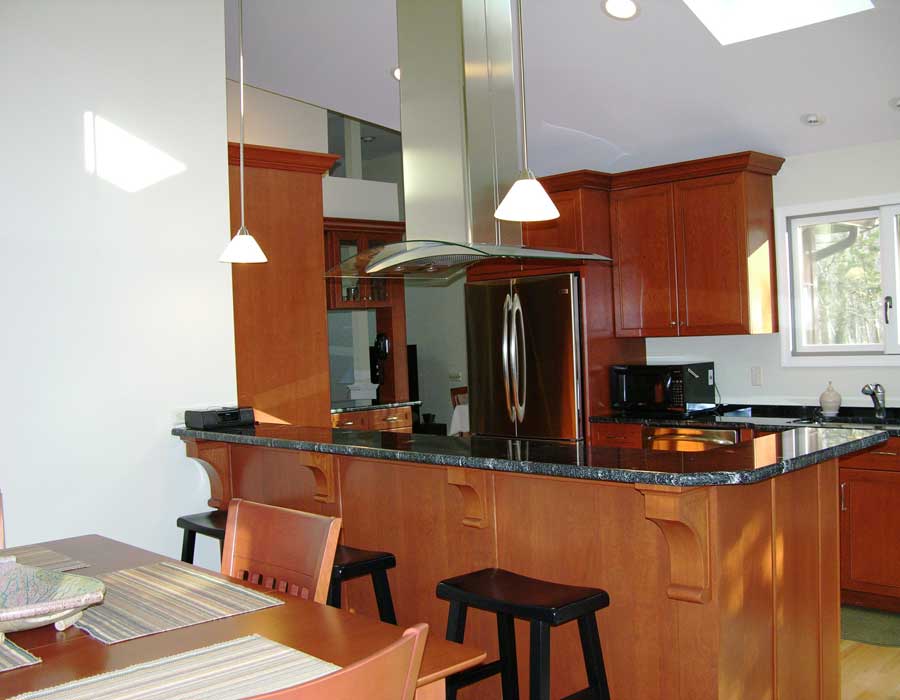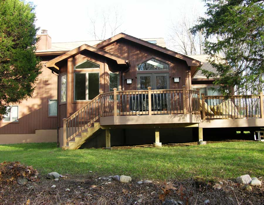 Although open to the rest of the house, the existing undersized Kitchen (8×10) on this contemporary did not provide enough room for entertaining. A new larger Kitchen and Deck better accommodates this homeowner’s large extended family.