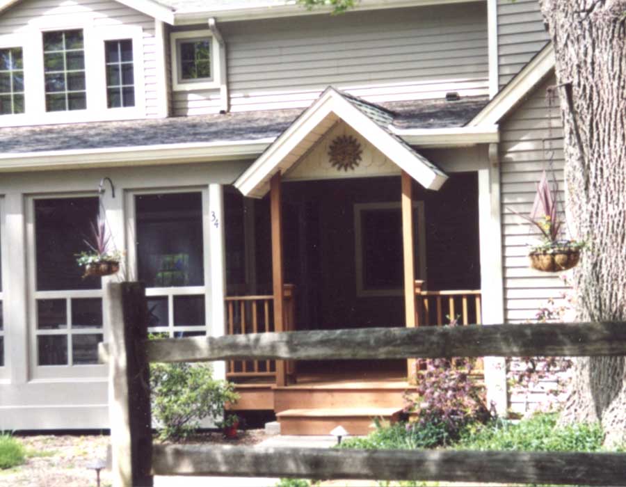 Enjoyment of the three acre property with an on-site pond was enhanced by adding a new screened porch, deck and front entry porch.