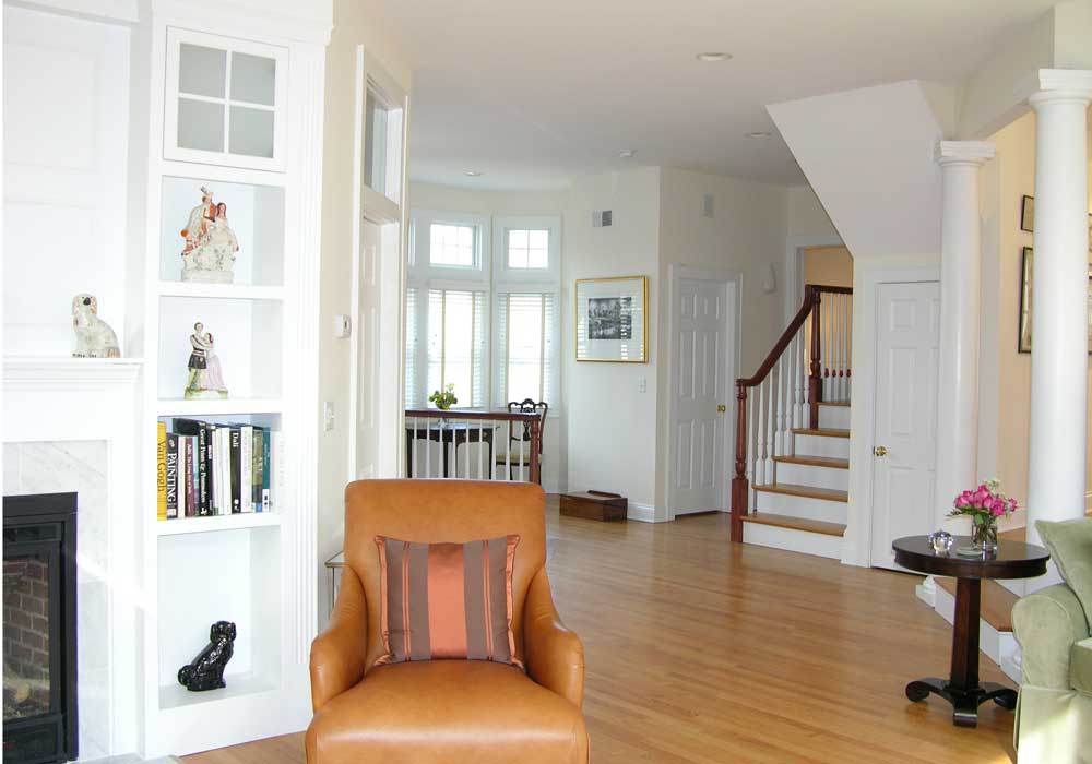 Originally just a small carriage house of a much larger estate, this house underwent a grand transformation, such that it now matches the size and character of the other estate houses in the neighborhood. The addition and total interior reconfiguration created a space in which they would entertain dignitaries and host formal events.