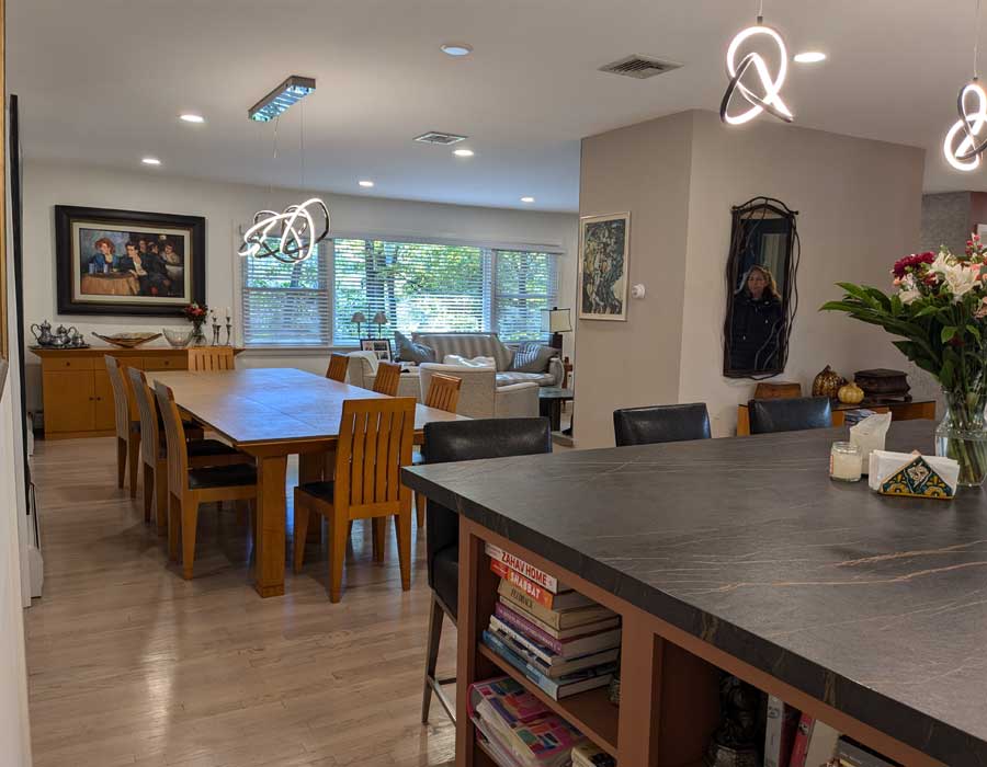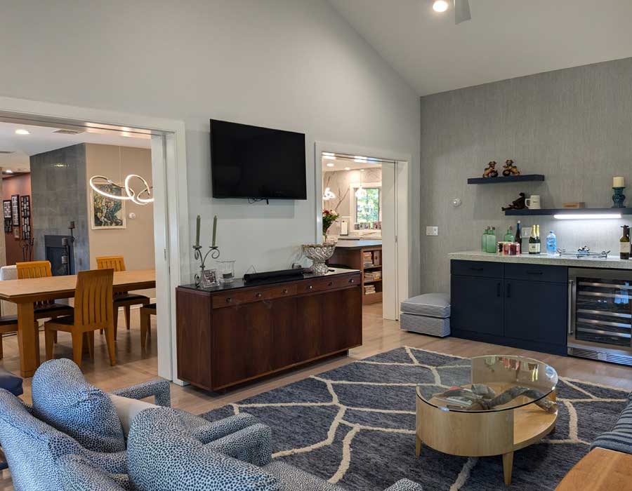 Significant renovations transformed this client’s childhood house into her dream forever home.  The kitchen was expanded and opened up to the rest of the house and a large sunroom replaced the old screened-in porch.  By adding a second master suite at the walk-out basement level, it became a multigenerational home that could comfortably accommodate her mother continuing to living there as well.